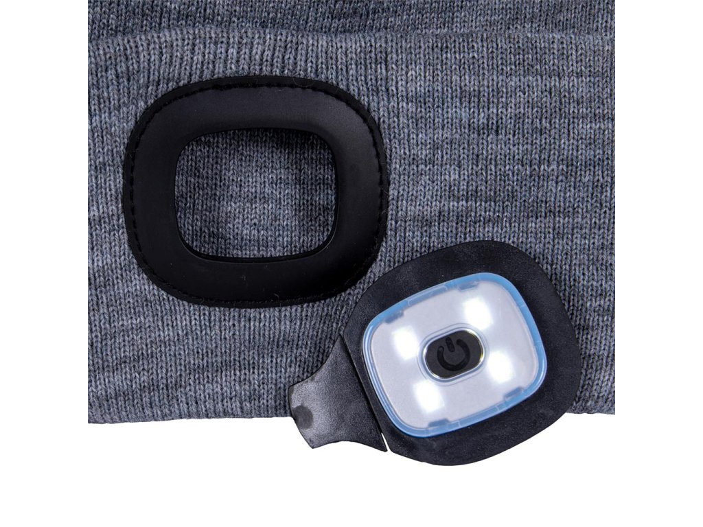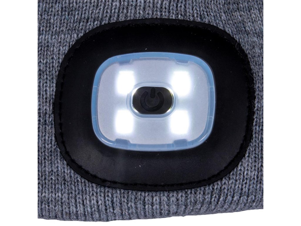 na prednej strane čiapky sa nachádza vyberateľné LED svetlo, ktoré sa nabíja pomocou USB konektora